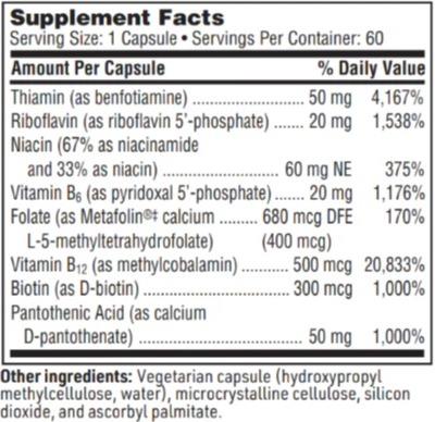 Active B Complex supplies a full complement of high-potency essential B vitamins in their coenzyme forms, providing optimal support directly usable by the human body. Active forms are used to ensure the improved absorption, blood transport, and cellular utilization of the B vitamins.