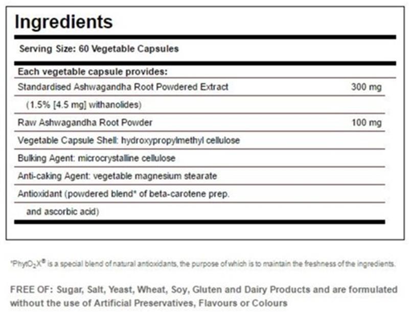 Standardized Ashwagandha Root Powder Extract ( Withania somnifera , 1.5% [4.5 mg] withanolides) 300mg